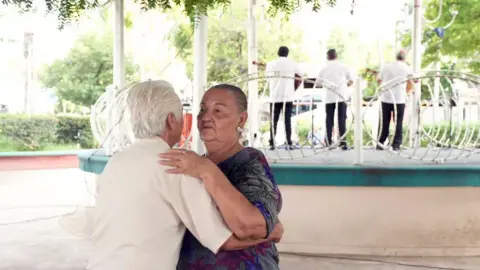 Personas de la tercera edad disfrutaron del romanticismo que plasma el Trío Azteca en el Parque de la colonia Gabriel Leyva