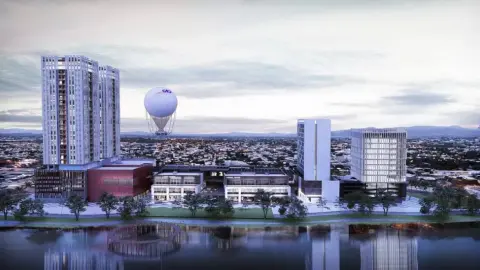 La gran plaza comercial cuenta con un hotel incluido, dos torres residenciales, un salón de eventos así como una plaza de tres niveles, todo en un solo lugar