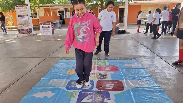 Con calidez y cercanía, Yuridia Loveli Román González, titular de Compavif, encabezó esta intervención que transforma los espacios escolares en estaciones lúdicas donde las infancias, a través de dinámicas sencillas, reflexionan sobre valores esenciales.