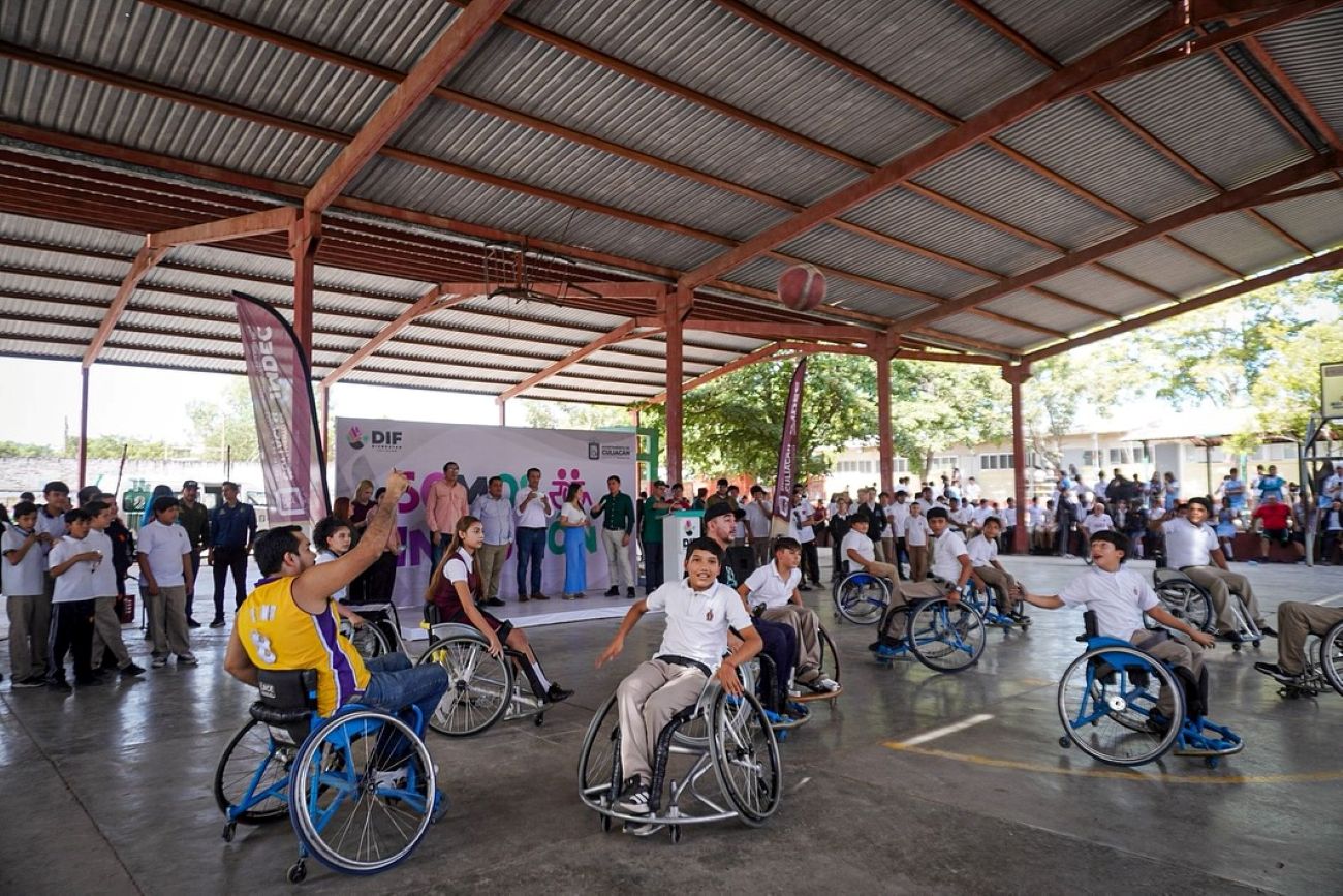 Culiacán, Sinaloa.- Con el propósito de sensibilizar a la comunidad estudiantil y fortalecer una verdadera cultura de inclusión, el DIF Culiacán llevó hasta la Escuela Secundaria General Nº 8 “Jesús Silva Herzog” una emotiva exhibición de básquetbol sobre silla de ruedas, como parte de las actividades del Mes de la Inclusión y en el marco del Día Mundial de las Personas con Discapacidad.
