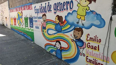 La comunidad educativa de este plantel de Prados del Sol 2, impulsa murales con mensajes de equidad, respeto y medio ambiente
