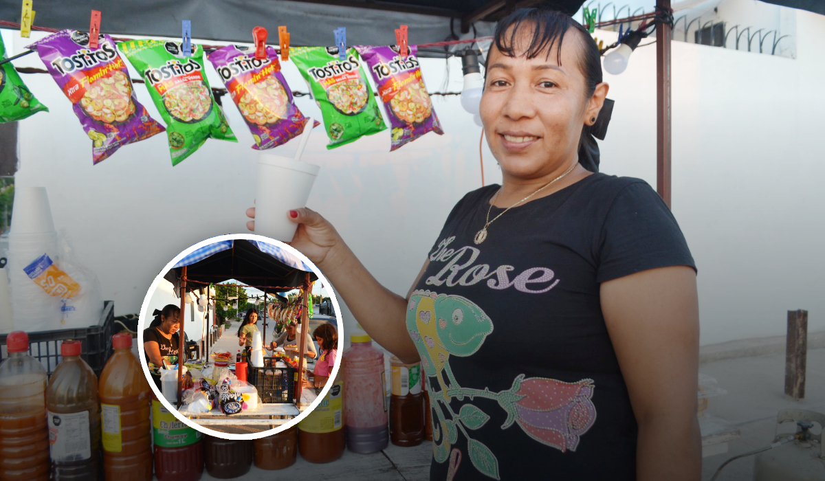 Rosa Elena compartió que, ante la necesidad de una oportunidad laboral, su esposo tuvo que emigrar al norte del país. Con el dinero que él le enviaba, ella fue ahorrando poco a poco durante varios meses hasta juntar lo suficiente para invertir en su propio negocio.