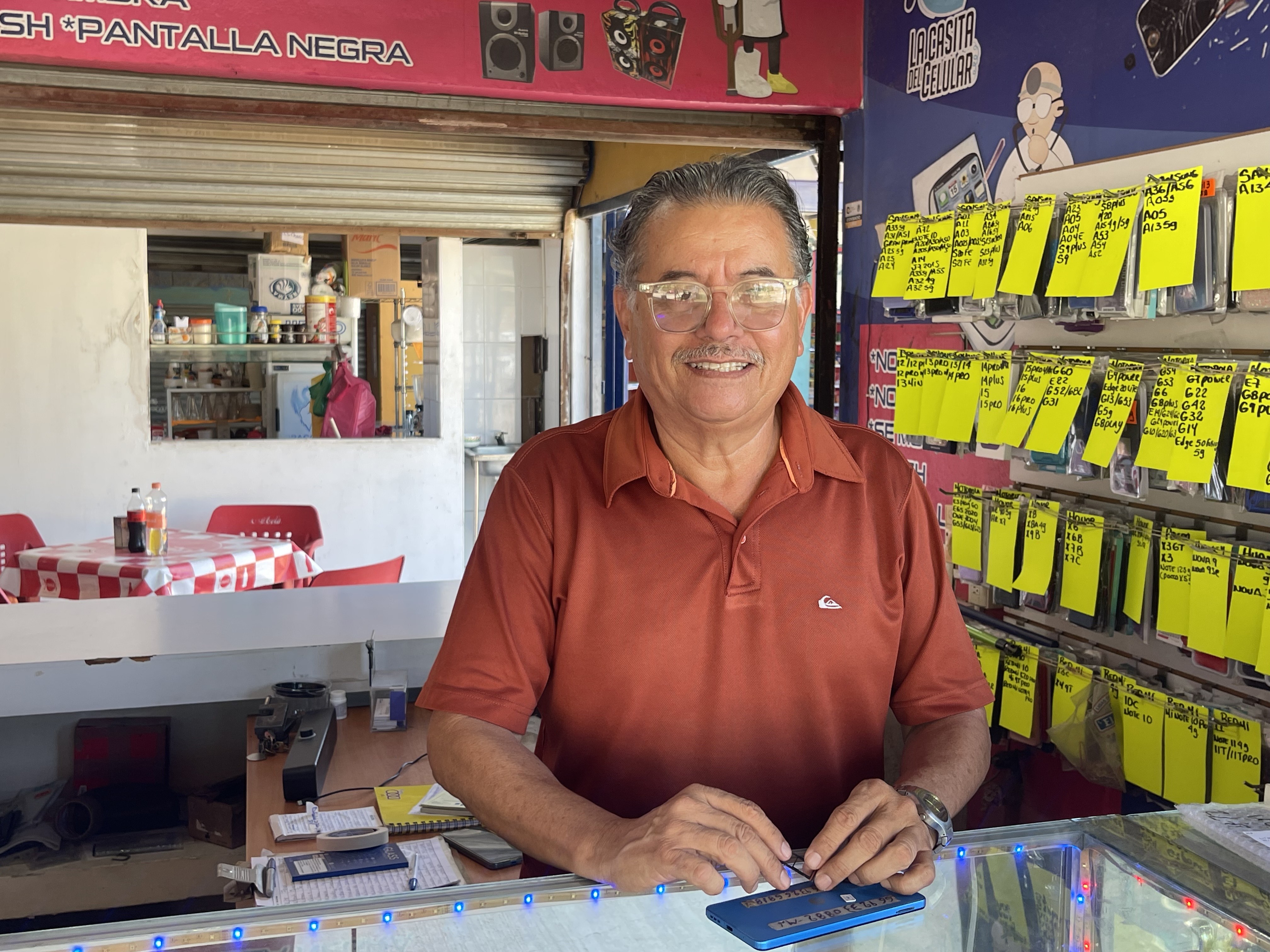 Abelardo abrió la Casita del Celular en donde vende accesorios y ofrece también reparación de equipos. Este negocio le ha permitido llevar una vida más tranquila.