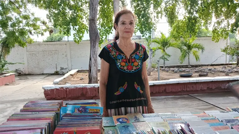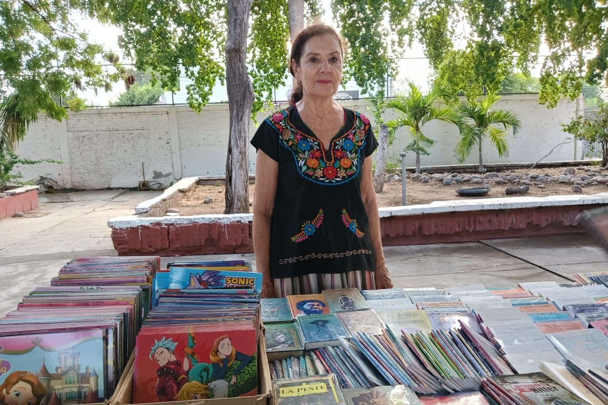 En medio de patios llenos de risas, timbres escolares y mochilas coloridas, una mujer recorre las escuelas de Culiacán con una misión clara: acercar la lectura a los jóvenes a un precio al alcance de todos.