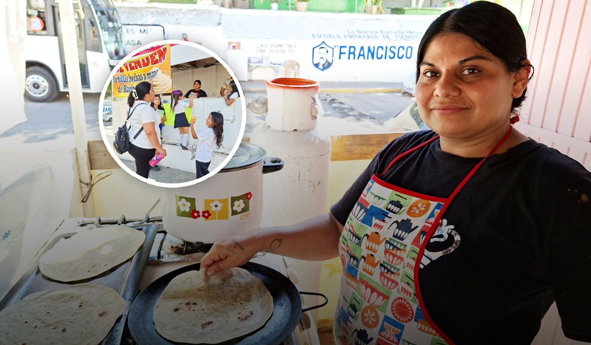 Desde su pequeño local frente a la escuela primaria Francisco Zarco en Culiacán, Blanca Esthela Chavira Ávalos prepara sabrosas tortillas de harina con dedicación y convierte cada una en motivación para construir un mejor futuro para sus hijos