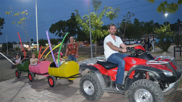 El Cuatri Tren está conformado por vagones elaborados con material reciclable, principalmente tambos pintados a mano con colores vivos que llaman la atención desde lejos. Arrastrados por una cuatrimoto y acompañados de música alegre, los vagones recorren el recién construido Sendero de la Paz durante más de diez minutos, tiempo suficiente para que la risa vuelva a ocupar el espacio público.