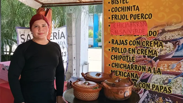 Desde las 4:40 de la mañana, Cristina Madrigal atiende junto a su madre un negocio familiar de guisos y burritos frente al fraccionamiento Los Ángeles, una historia de trabajo, constancia y comunidad al nororiente de Culiacán