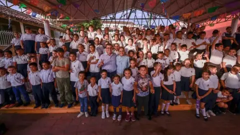 En la Noria alcalde de Mazatlán entrega 900 árboles, 100 paquetes de útiles y 200 mochilas