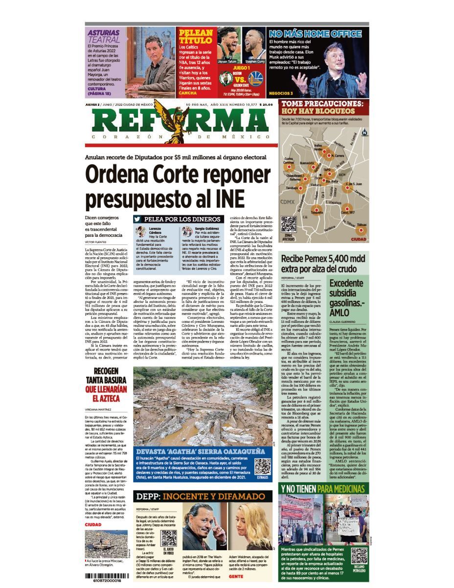 Infórmate con nosotros de la información que está circulando este 2 de junio de 2022 en los principales diarios de la República Mexicana