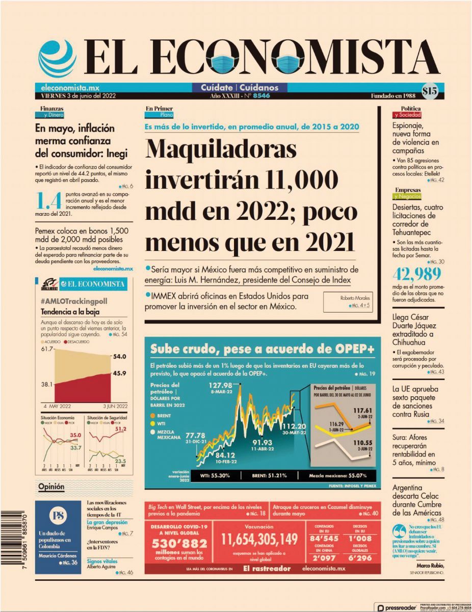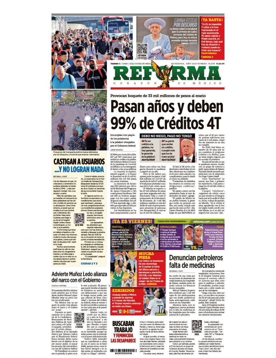 Te compartimos las portadas de los periódicos más importantes de México de este 3 de junio de 2022