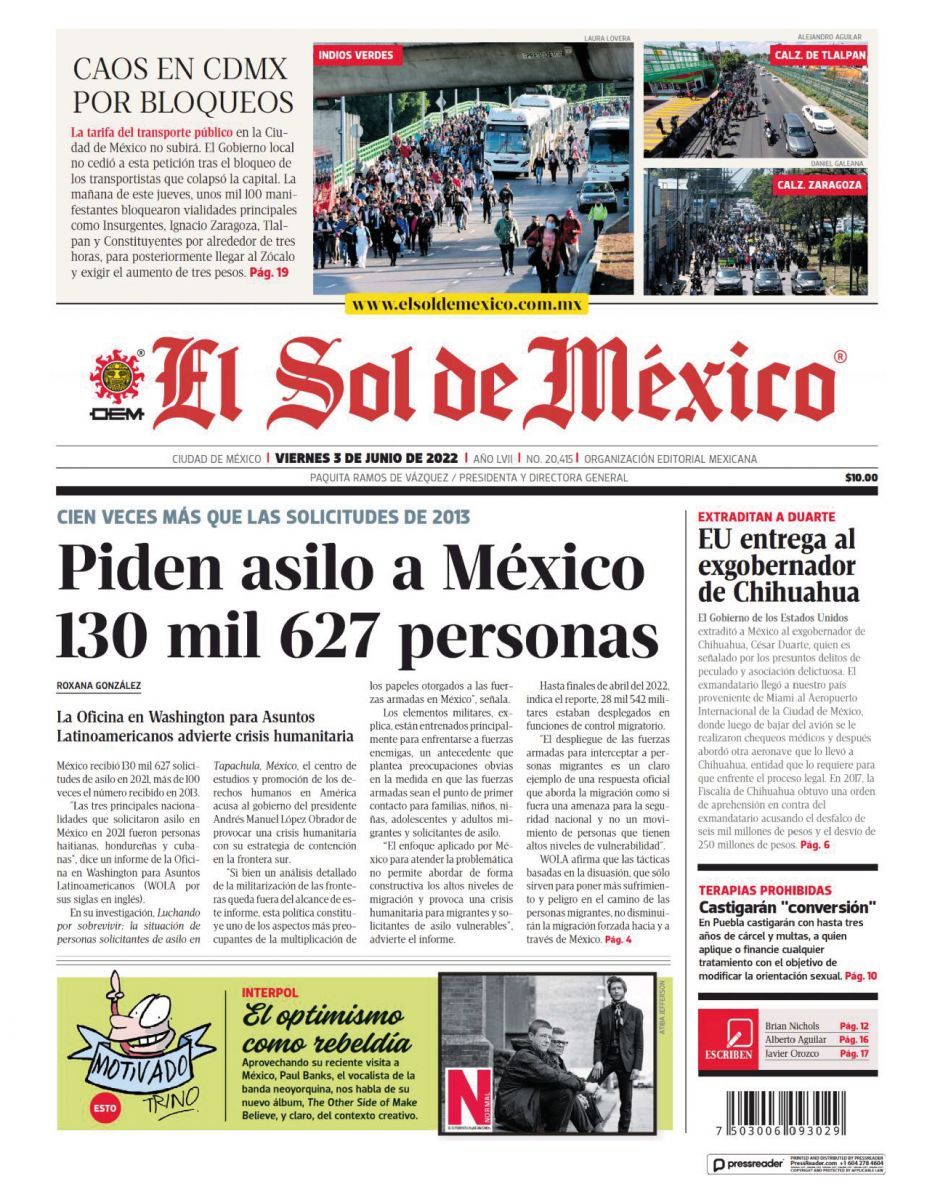 Infórmate con nosotros de la información que está circulando este 3 de junio de 2022 en los principales diarios de la República Mexicana