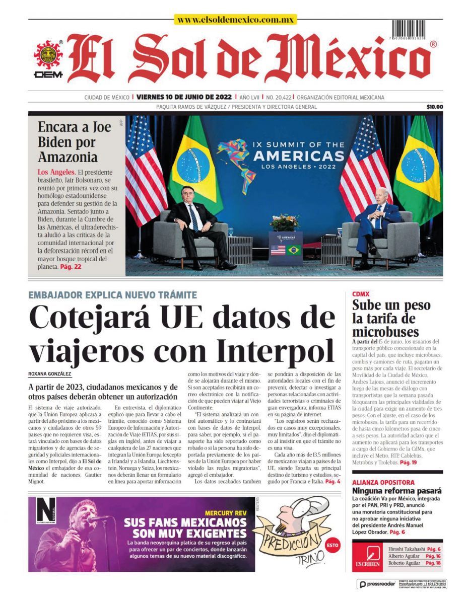 Infórmate con nosotros de la información que está circulando este 10 de junio de 2022 en los principales diarios de la República Mexicana