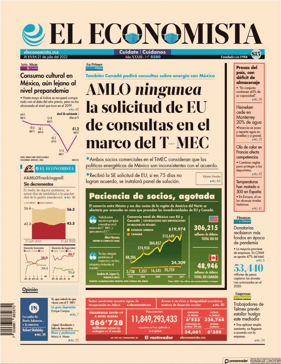 Te compartimos las portadas de los periódicos más importantes de México de este 21 de julio de 2022
