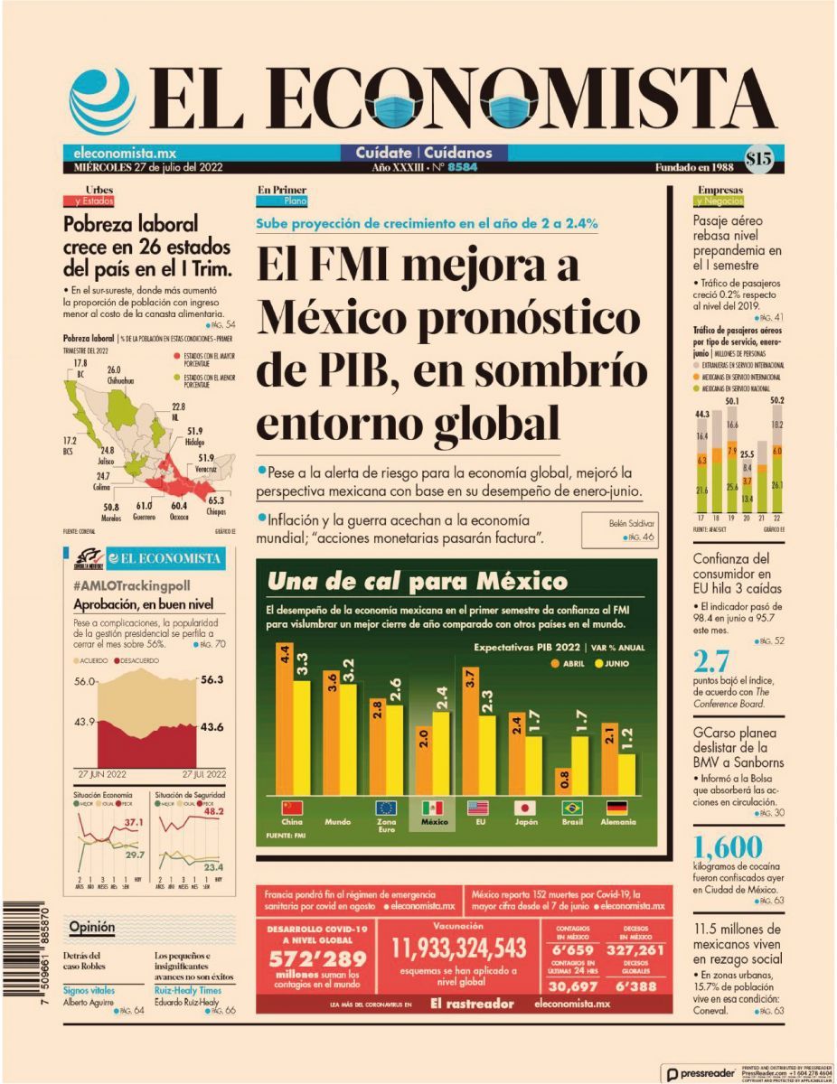 Te compartimos las portadas de los periódicos más importantes de México de este 27 de julio de 2022