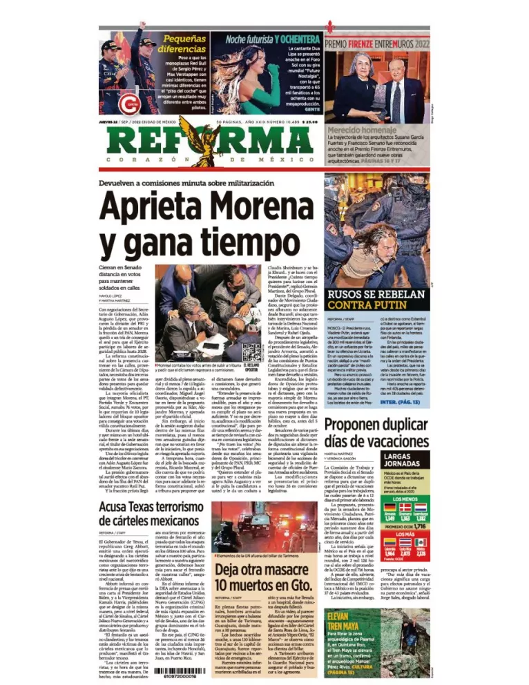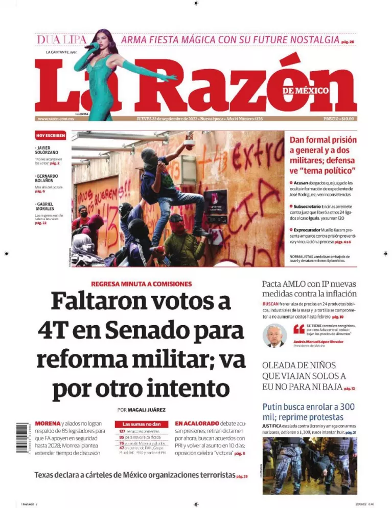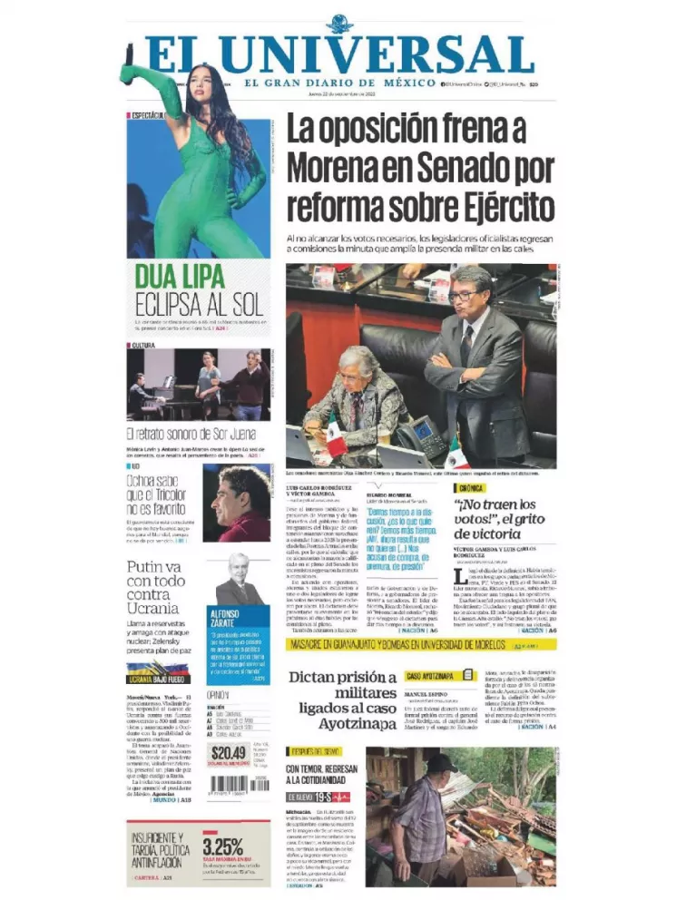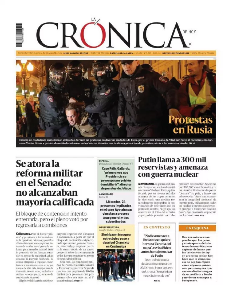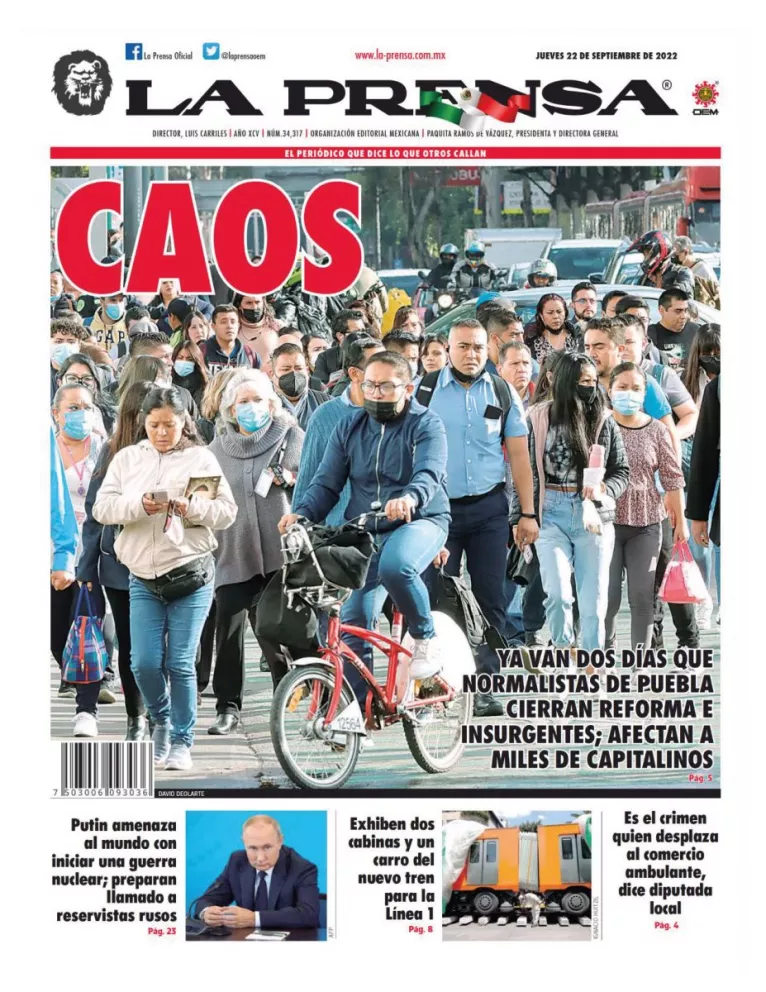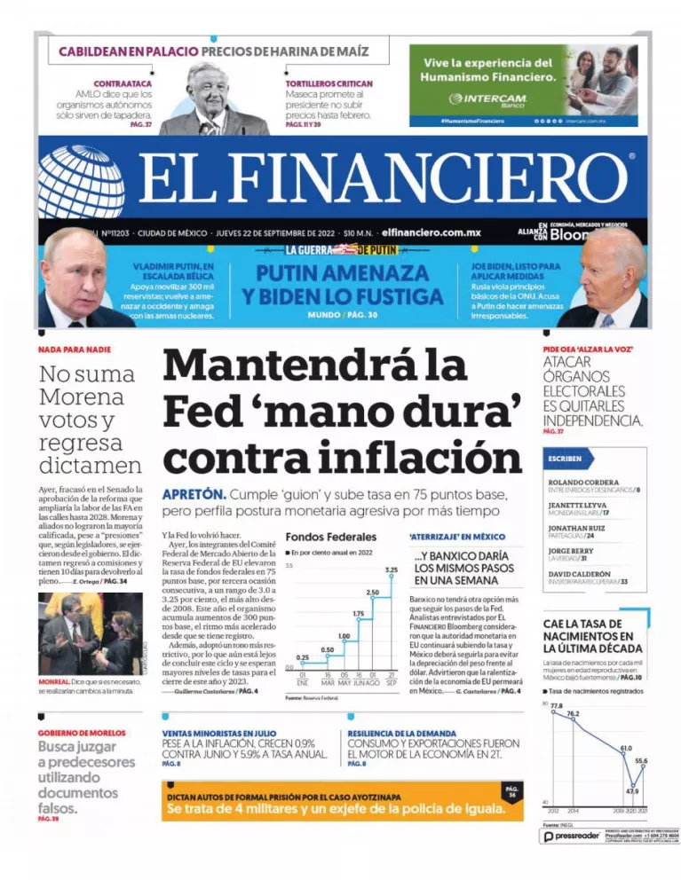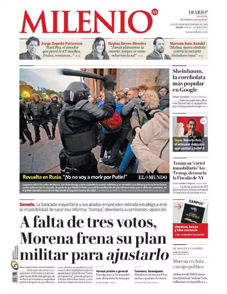 Infórmate con nosotros de la noticia que está circulando este 22 de septiembre de 2022 en los principales diarios de la República Mexicana