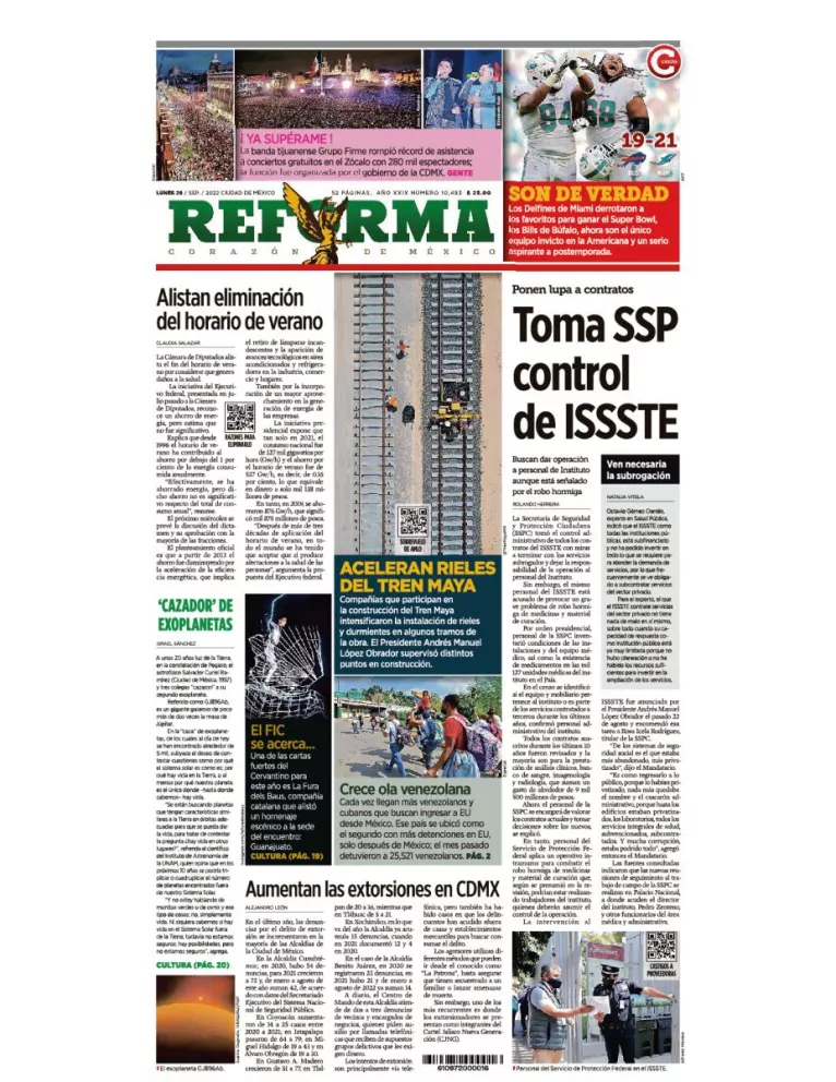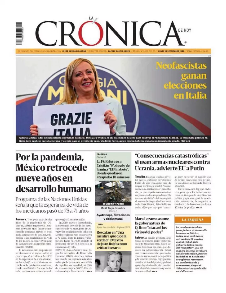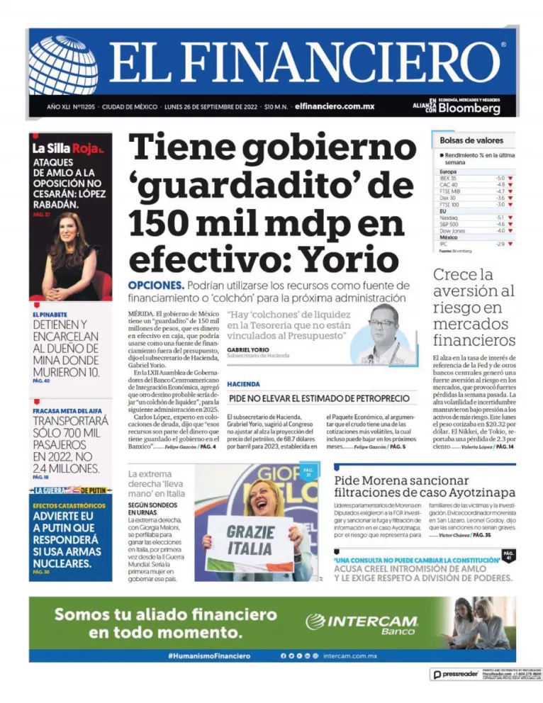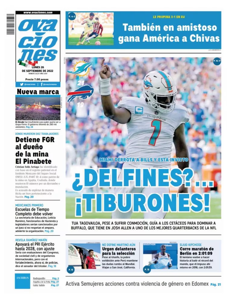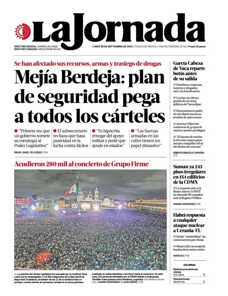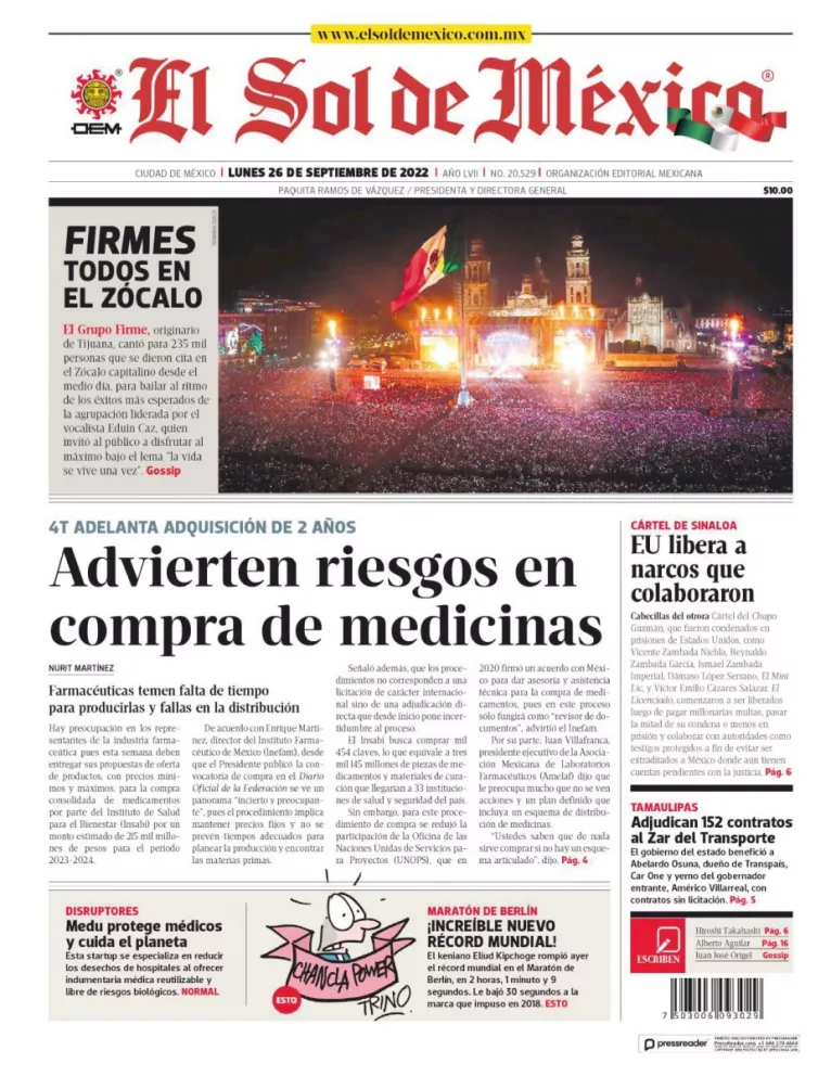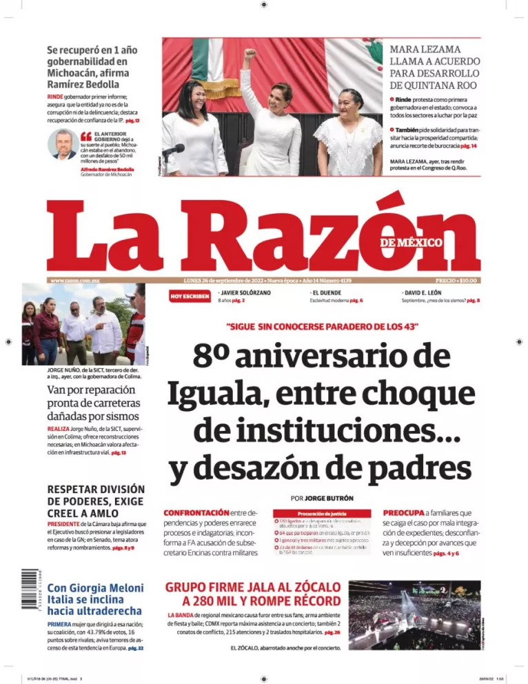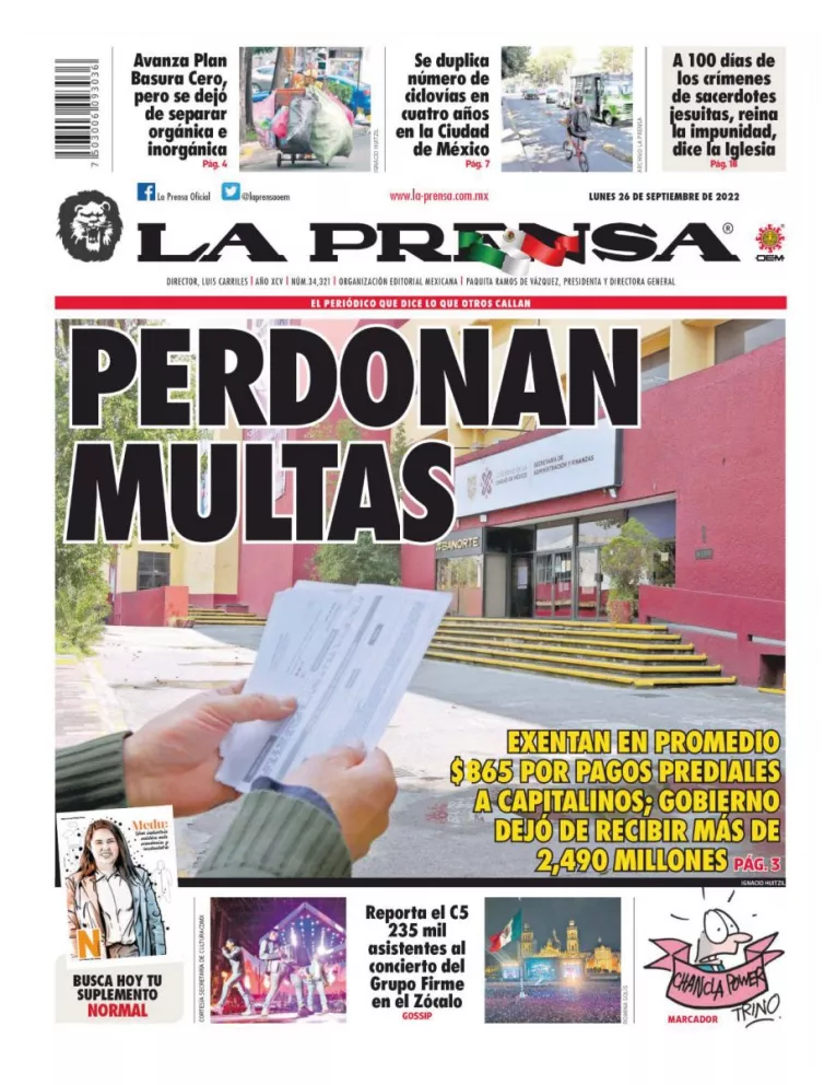 Infórmate con nosotros de la noticia que está circulando este 26 de septiembre de 2022 en los principales diarios de la República Mexicana