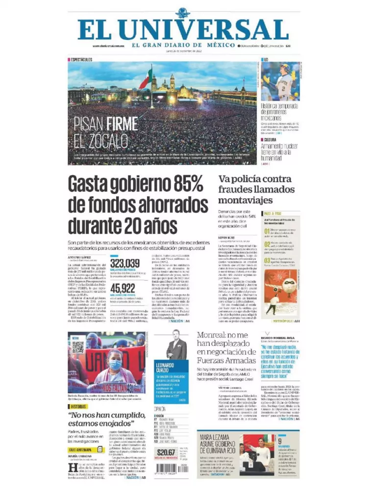 Te compartimos las portadas de los periódicos más importantes de México este 26 de septiembre