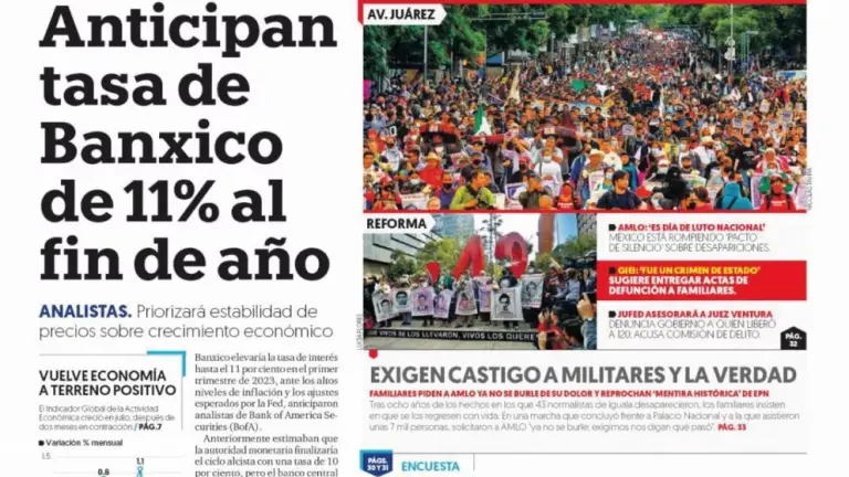 Portadas de los principales diarios nacionales de México