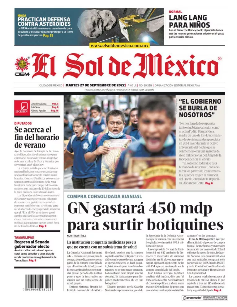 Infórmate con nosotros de la noticia que está circulando este 27 de septiembre de 2022 en los principales diarios de la República Mexicana