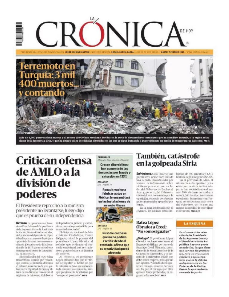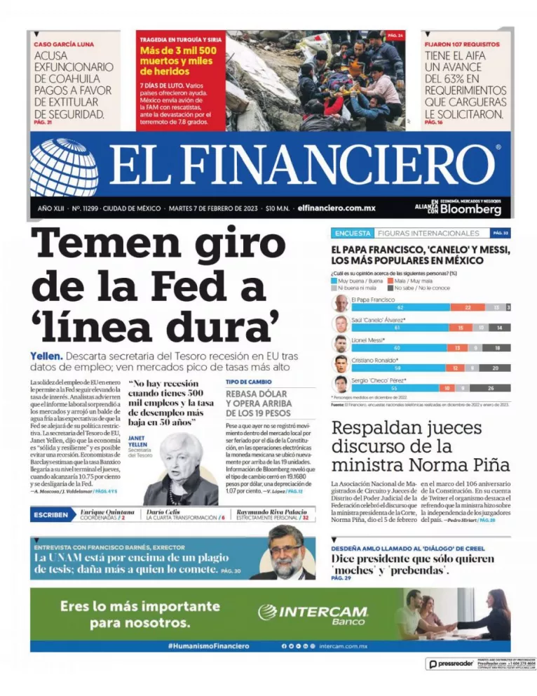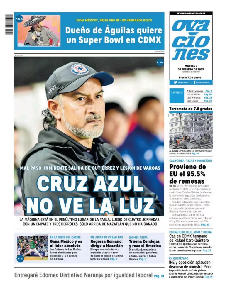 Infórmate de las noticias que está circulando este 7 de febrero del 2023 en los principales diarios de la República Mexicana