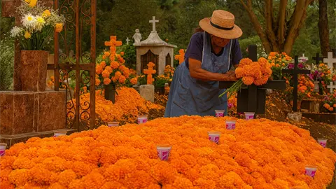 En Pátzcuaro y la isla de Janitzio, las comunidades purépechas realizan impresionantes ceremonias nocturnas. Los panteones se iluminan con veladoras, flores de cempasúchil y música tradicional, creando uno de los escenarios más representativos del Día de Muertos en México.