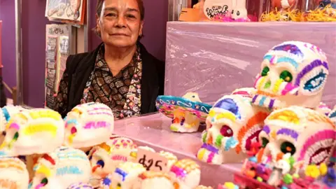 Doña Trini es parte de la cuarta generación familiar, haciendo calaveritas de dulce en Edomex