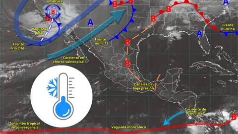 Para mañana sábado 22 de noviembre, el SMN prevé que la tormenta invernal y el frente frío núm. 16 recorrerán el noroeste y norte de México, generando ambiente frío a gélido con posible caída de nieve o aguanieve en sierras de Baja California, Sonora y Chihuahua.