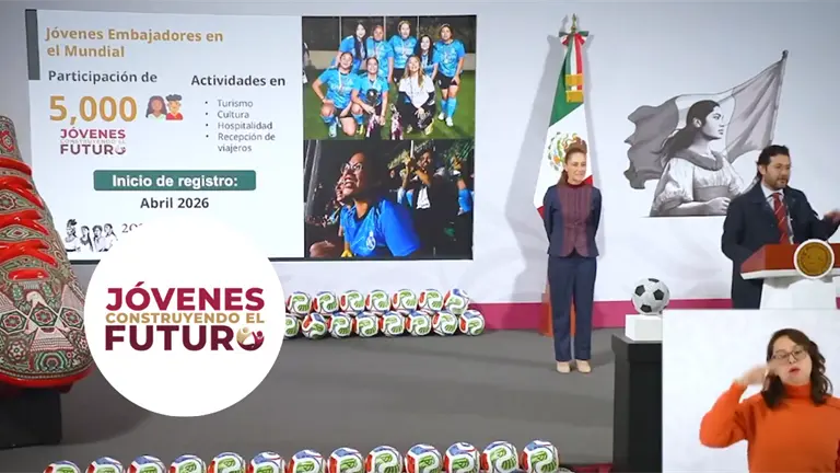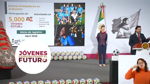 Con la iniciativa "Jóvenes Embajadores en el Mundial" cinco mil personas de 18 a 29 años de edad podrán colaborar en actividades relacionadas al Mundial de Fútbol 2026. Con el objetivo de vincular a jóvenes mexicanos con actividades y adquieran habilidades entorno a la fiesta futbolera más importante del mundo.