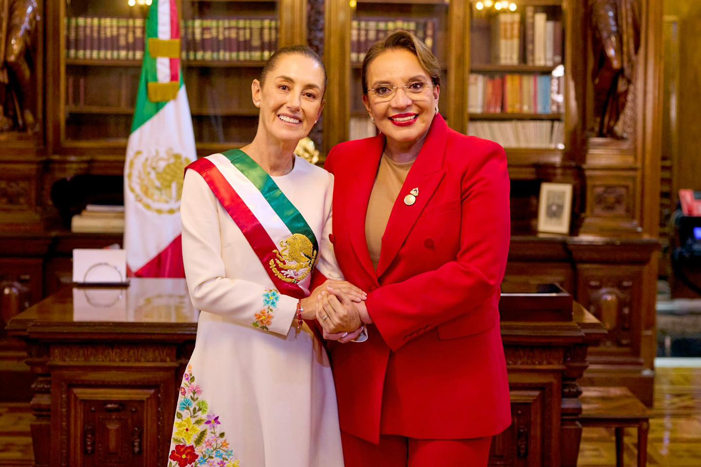 La Presidenta de México, Claudia Sheinbaum Pardo, recibió en Palacio Nacional a su homóloga de la República de Honduras, Xiomara Castro, con quien sostuvo una reunión privada.
