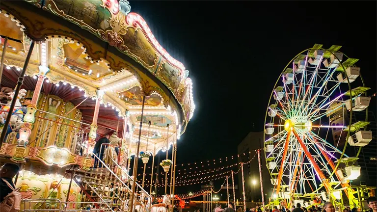 Las y los visitantes pueden subir a la rueda de la fortuna y recorrer espacios temáticos como la Oficina Postal, la Casa de Santa, la Estación del Tren, el Túnel de Caramelos, el Carrusel, el Taller de Santa y el Mercado Nuevo León, donde podrán tomarse la foto del recuerdo.
