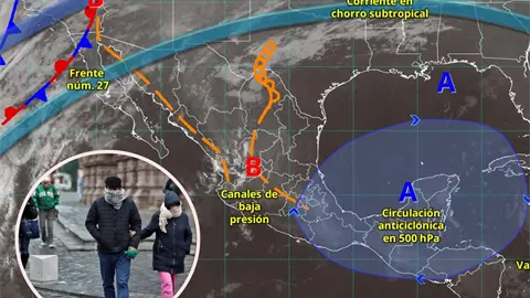 Su interacción con las corrientes en chorro polar y subtropical, así como con una vaguada en niveles altos de la atmósfera, causará un ambiente más frío de lo habitual, acompañado de vientos intensos y lluvias en algunas entidades.