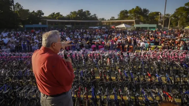 Entrega Rocha Moya 3 mil bicicletas en Pericos, Mocorito a niños en festejo navideño