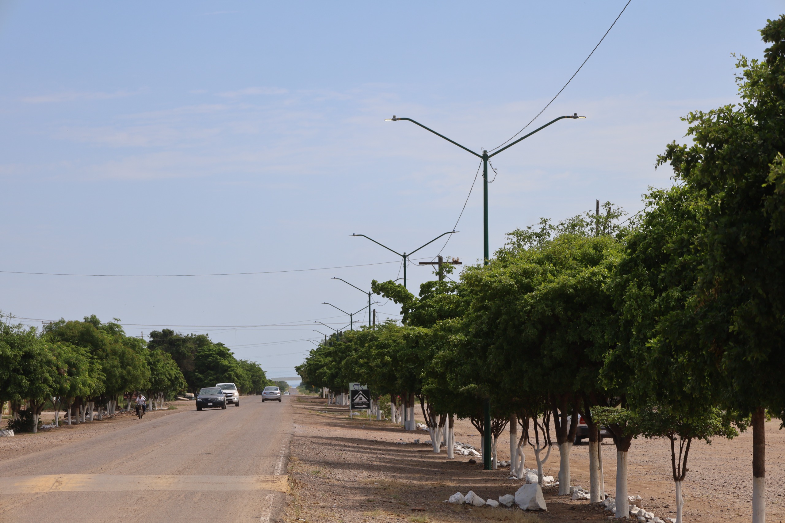 El proyecto, impulsado por el Ayuntamiento de Navolato, contempló la rehabilitación total del alumbrado público con 48 lámparas LED de 100W, la limpieza y pintado de 30 postes, un nuevo poste con luminarias dobles y más de 1,100 metros de cableado.