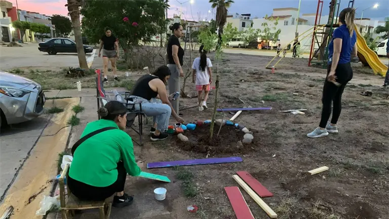 Vecinos de Portafe se unen para arborizar y cuidar su parque al norte de Culiacán