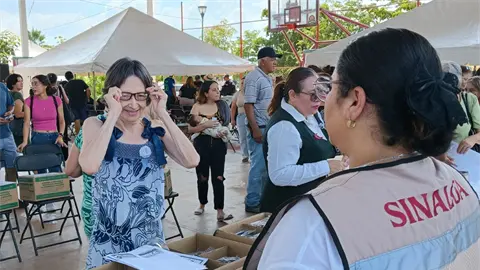 También se instalaron módulos del Registro Civil con servicios gratuitos de actas de nacimiento y matrimonio, trámites vehiculares y licencias con descuentos de hasta el 75 por ciento, cortes de cabello por parte del ICATSIN, y se entregaron lentes de lectura, árboles, focos ahorradores, despensas y ropa donada por el Voluntariado del DIF Sinaloa.