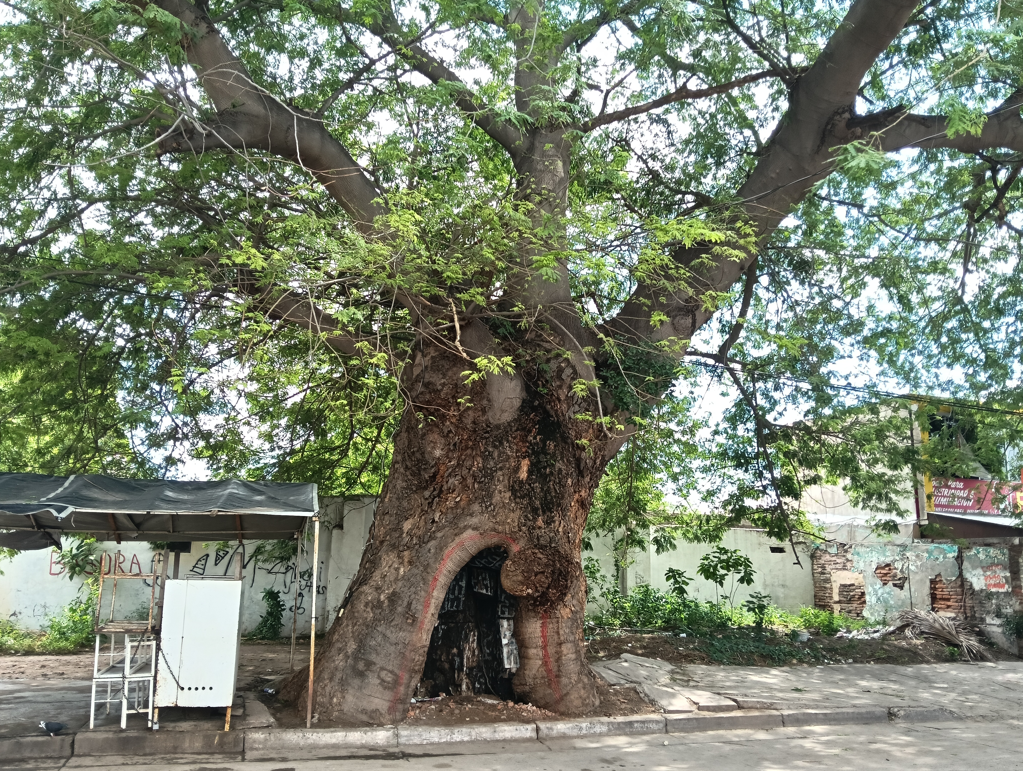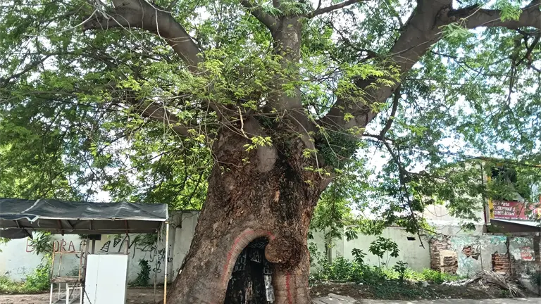 En una pequeño lugar de la colonia Centro de Navolato, en la esquina de las calles Hidalgo y Macario Gaxiola, se encuentra un árbol que parece desafiar al tiempo.