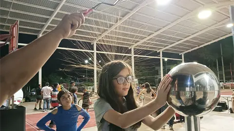 Entre risas, curiosidad y muchas preguntas, niñas, niños y adultos participaron en diversas dinámicas que combinan juego y conocimiento. Las atracciones invitan a descubrir conceptos científicos de forma vivencial: