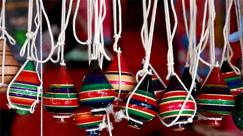 “Huele igualito… a churros, a dulce, a mi niñez. No sabes lo que extrañaba esto. Aquí uno vuelve a ser quien era”, dice mientras se prueba un sombrerito de luces que terminará comprando “solo por la anécdota”.