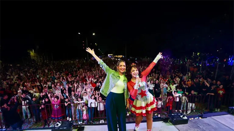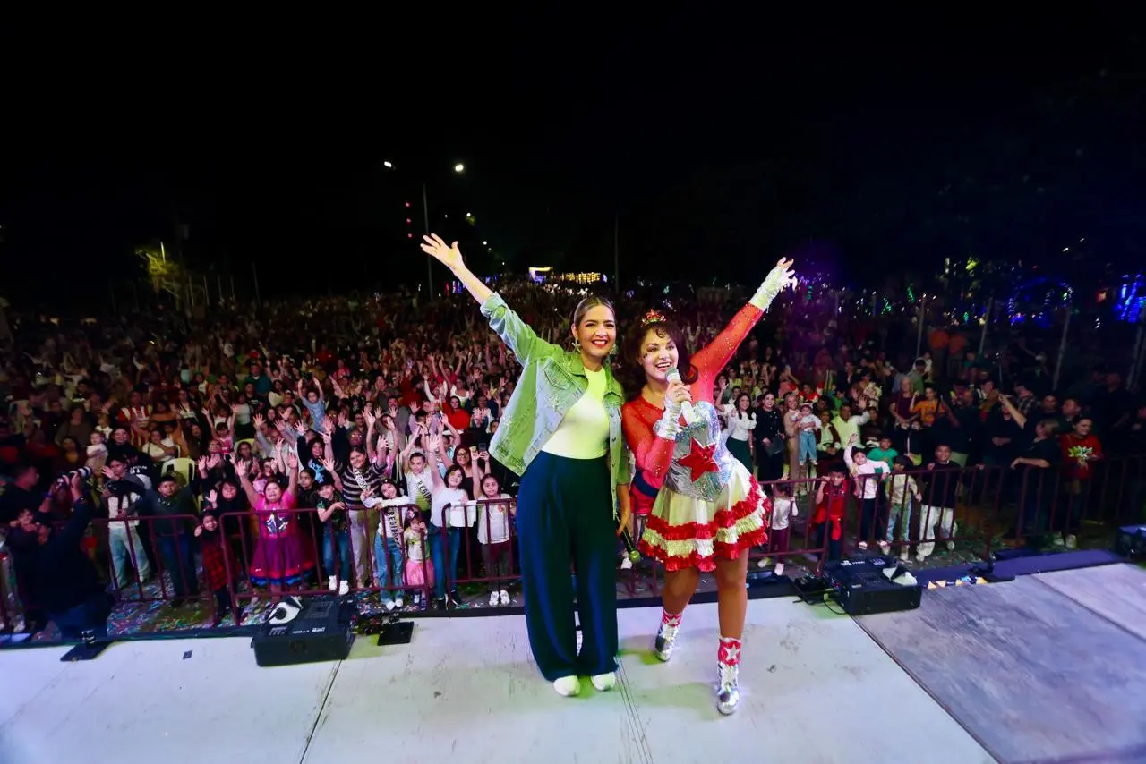 Con gran entusiasmo y un ambiente de alegría familiar, miles de niñas, niños y adultos se congregaron en la Villa Navideña, en el Parque Central, para disfrutar del espectáculo estelar de la reconocida artista Tatiana, en una noche llena de música, baile y espíritu navideño