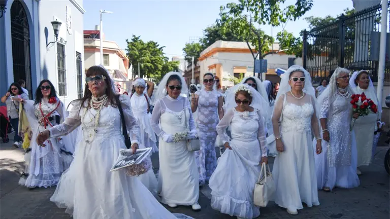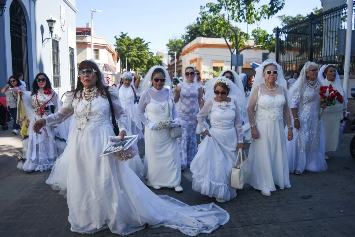 Una mañana especial se vivió este lunes 22 de diciembre, en el sector Centro de Culiacán, Sinaloa, pues varias mujeres vestidas con ajuar nupcial recorrieron las principales calles, para rendir tributo a Lupita La Novia de Culiacán.