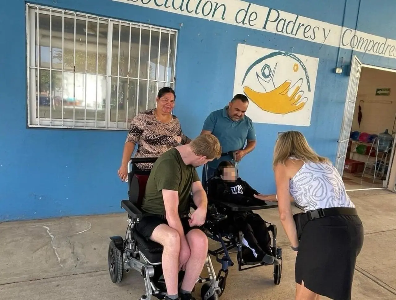 Niños con discapacidad reciben sillas de ruedas de la organización ROC Wheels en Mazatlán